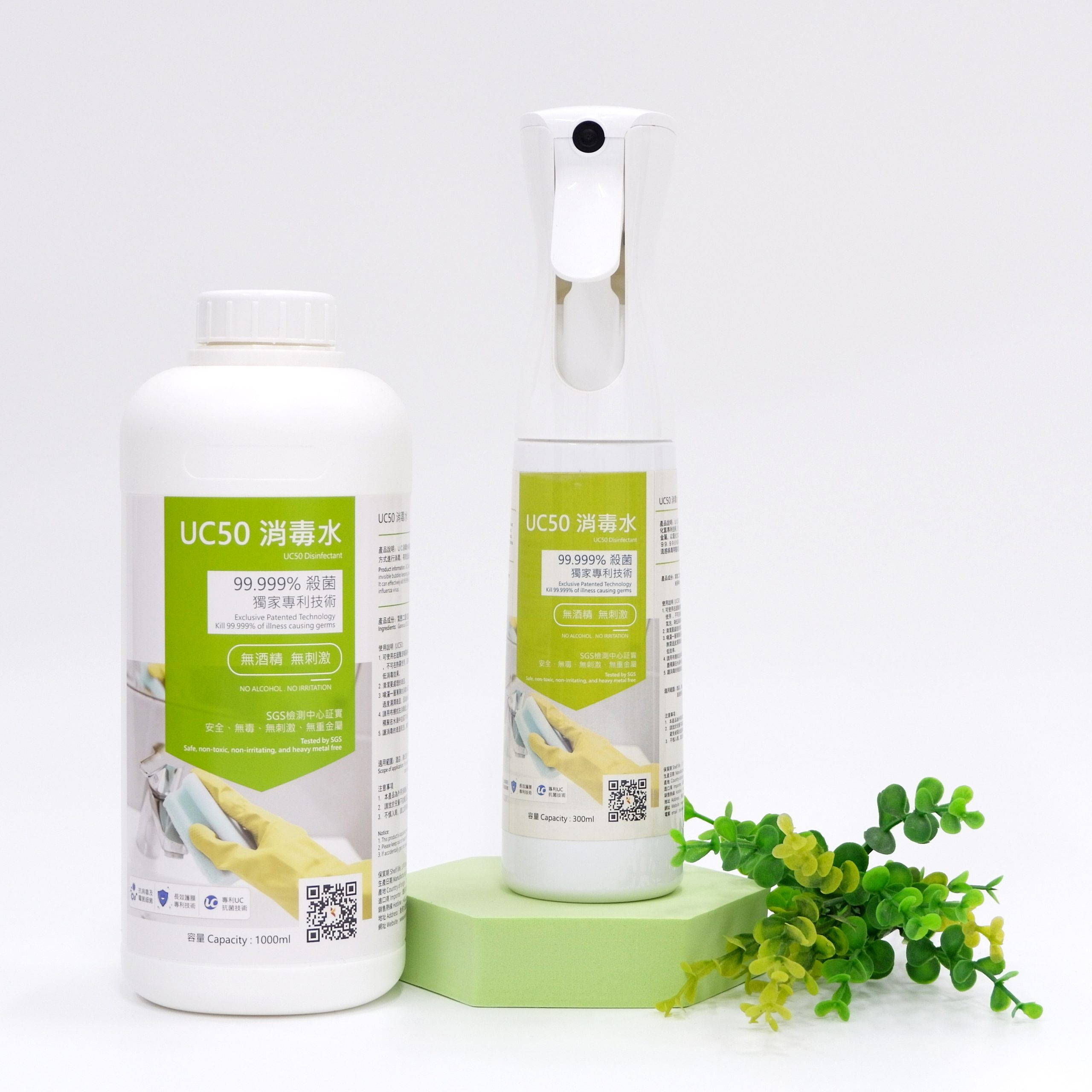 For public busy areas and surfaces such as clinic waiting hall, toilet, lift car call button panel, elevator hand rail and as such, UC300 with a concentration of 300 ppm, may be your better choice.